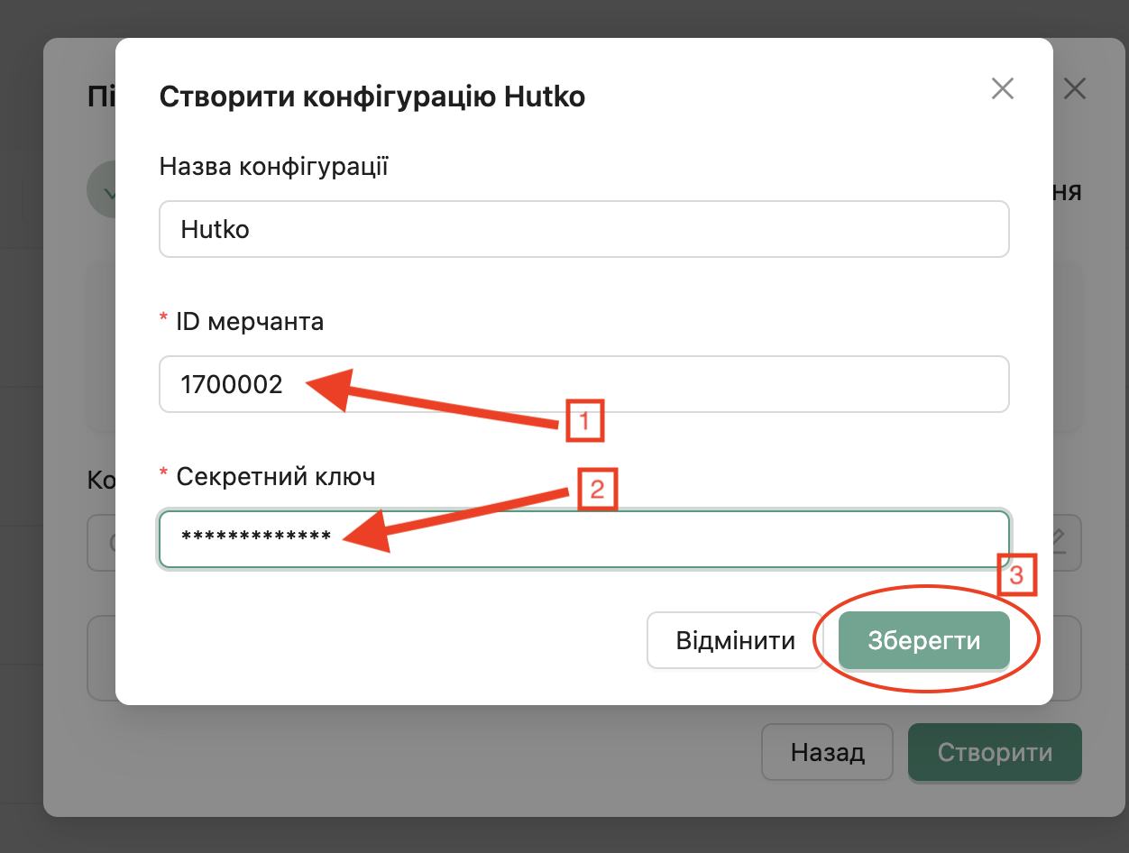 - У відповідні поля вставте раніше скопійовані ID мерчант та Секретний ключ. Після цього збережіть налаштування.