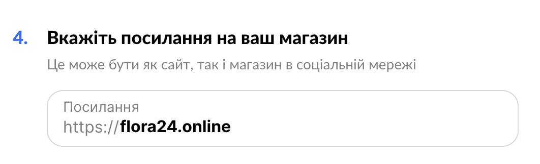 У формі заявки (пункт 4) в полі Посилання на ваш магазин обов’язково вкажіть: flora24.online