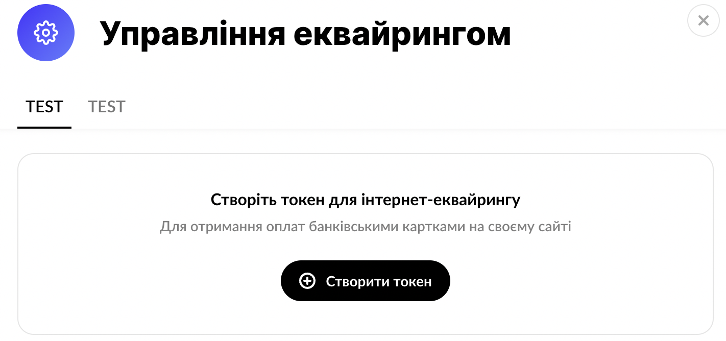 Натисніть Інтернет → Управління еквайрингом → Створити токен Скопіюйте його для подальшого налаштування.