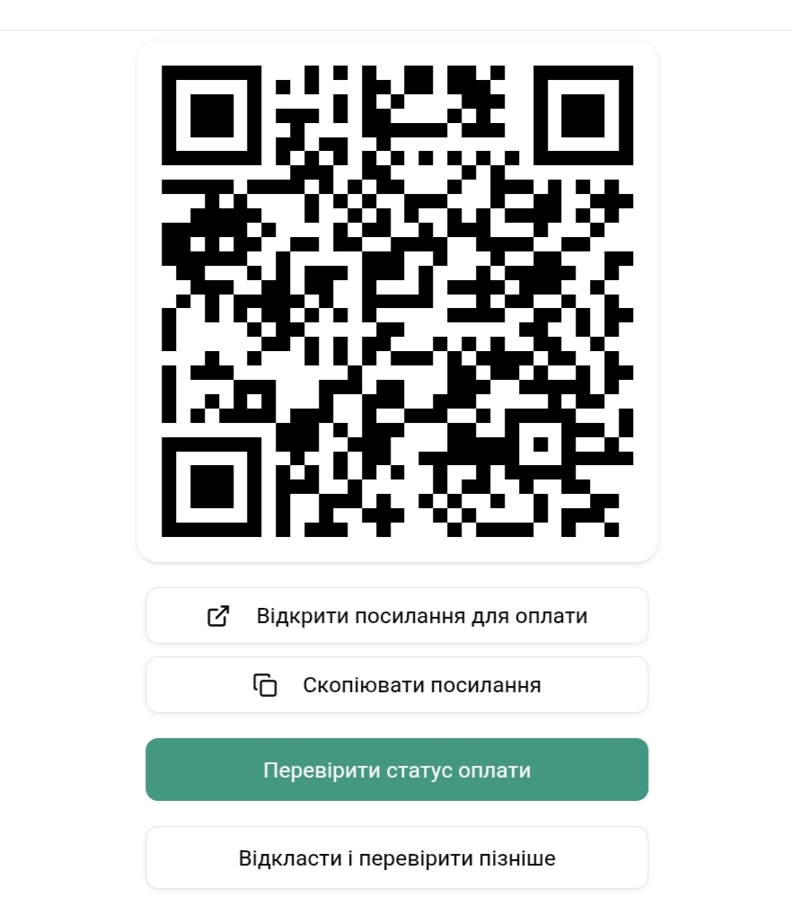 Статус можна перевірити у вікні оплати за допомогою кнопки Перевірити статус оплати або в розділі Замовлення → Всі де біля замовлення з’явиться відповідна позначка про успішний платіж.