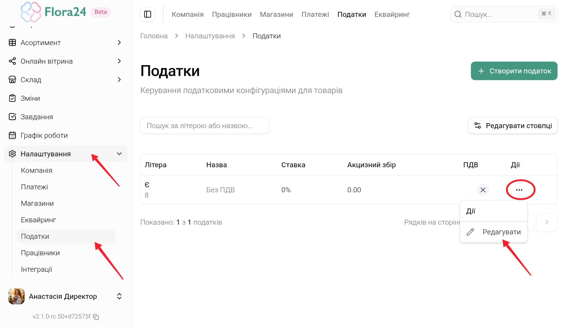 У Flora24 перейдіть у Налаштування → Податки