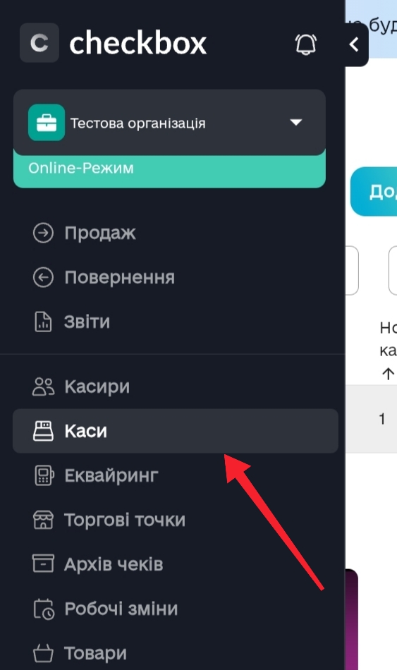 У адмін-панелі Checkbox оберіть розділ Каси