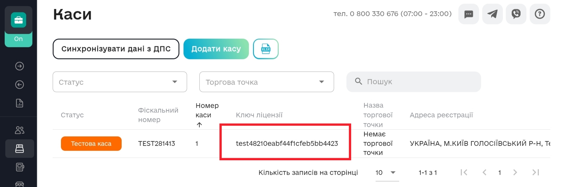 - У списку знайдіть потрібну касу та скопіюйте значення з колонки Ключ ліцензії