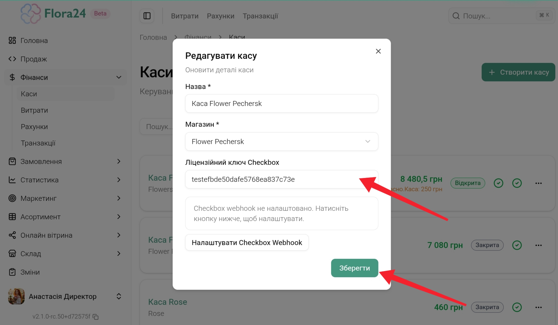 Закрийте зміну у Flora24 → завантажте новий ключ касира у Checkbox → відкрийте зміну у Flora24.