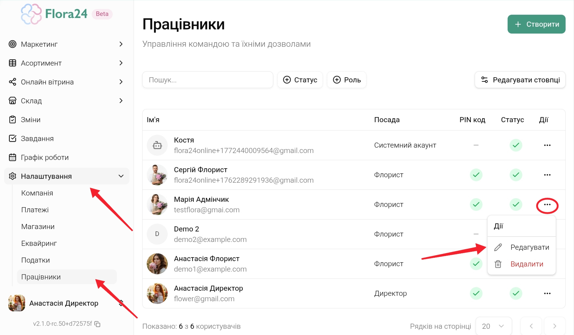 Перейдіть у Налаштування → Працівники