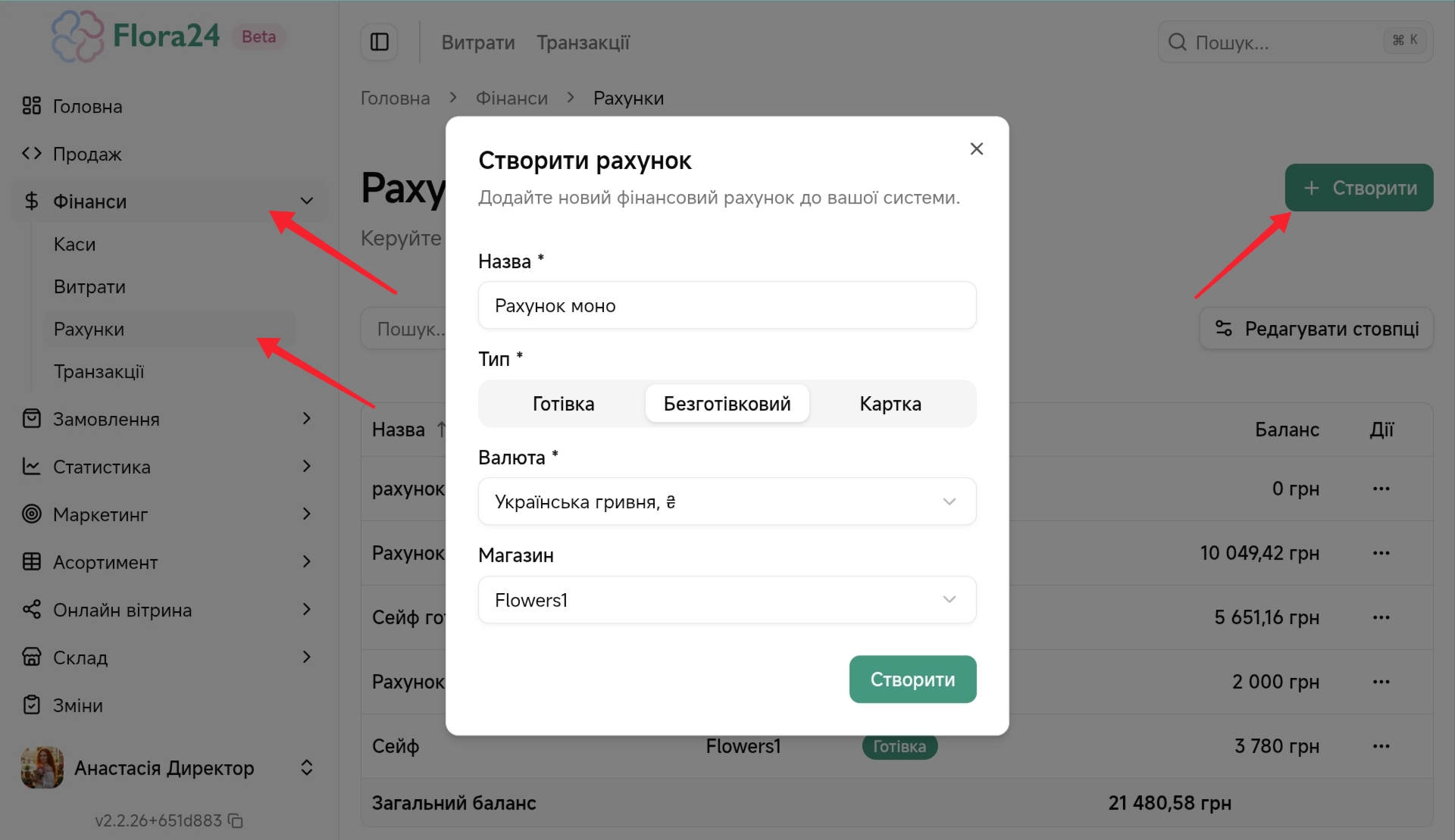 Рахунки у Flora24 — це цифрові копії місць, де зберігаються ваші кошти. Вони допомагають обліковувати оплати, контролювати грошовий баланс та розрахунки з постачальниками, щоб ви чітко бачили рух грошей.