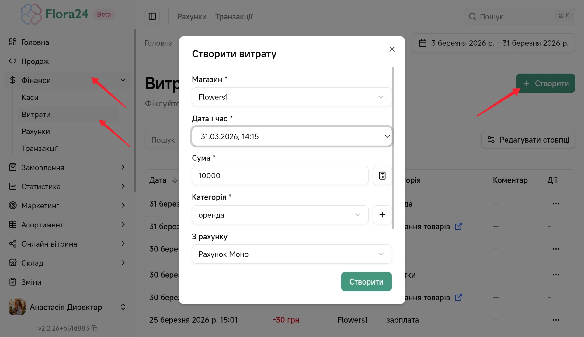 Інші витрати магазину необхідно вносити вручну через сторінку в адмін-панелі Фінанси → Витрати