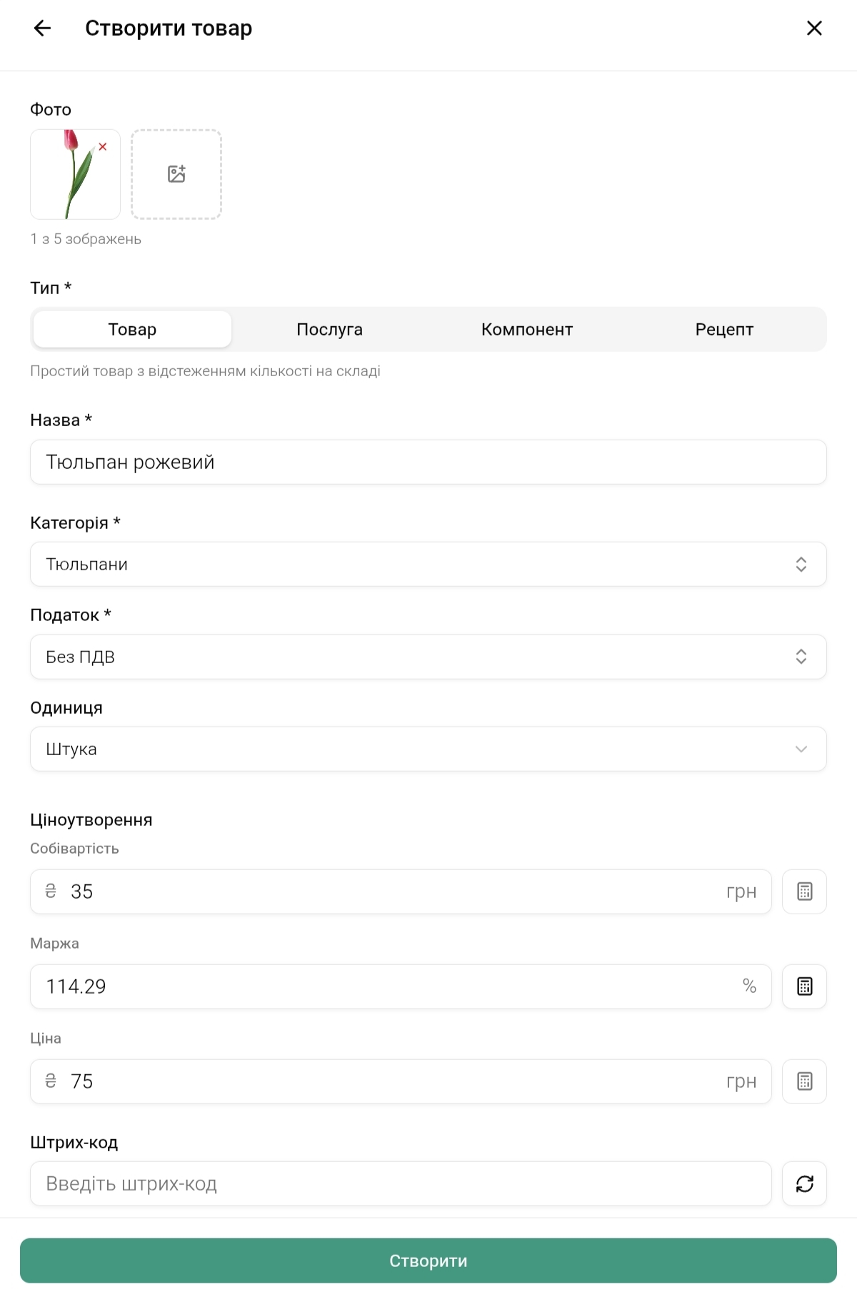 Можна вказати маржу — тоді ціна продажу розрахується автоматично