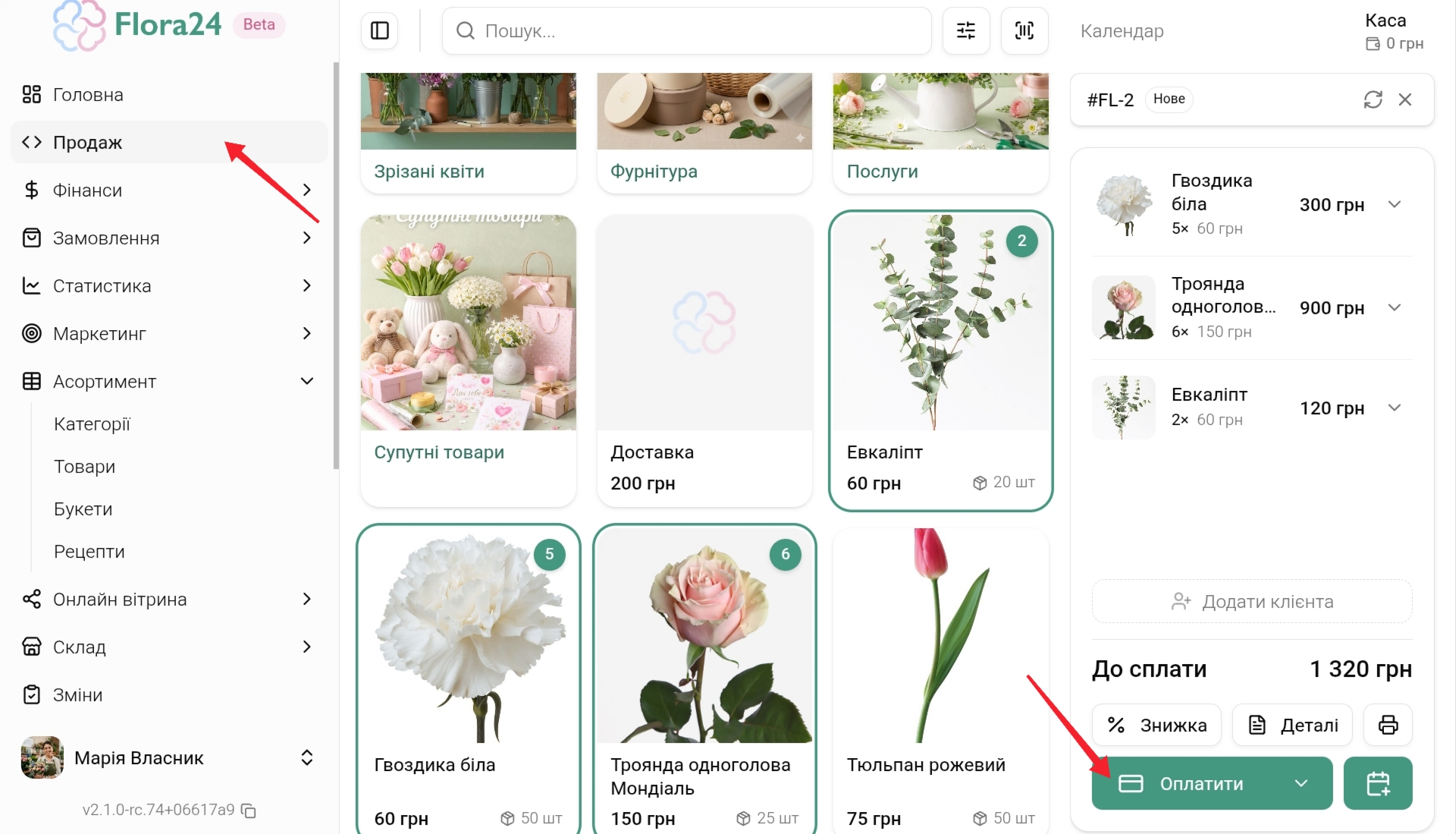 - Якщо букет уже створений у системі, флорист зможе знайти його на екрані продажу за кілька секунд і одразу додати в чек.