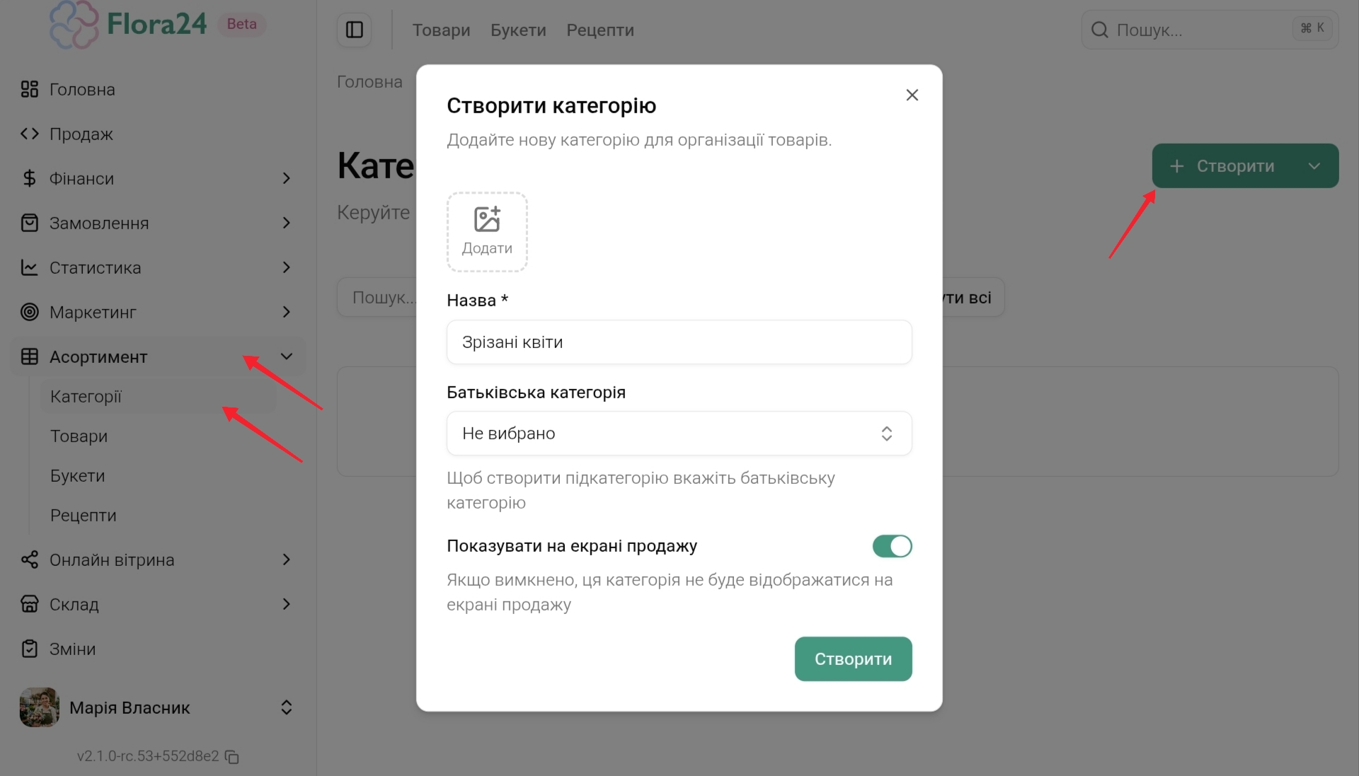 Перейдіть Асортимент → Букети → Створити