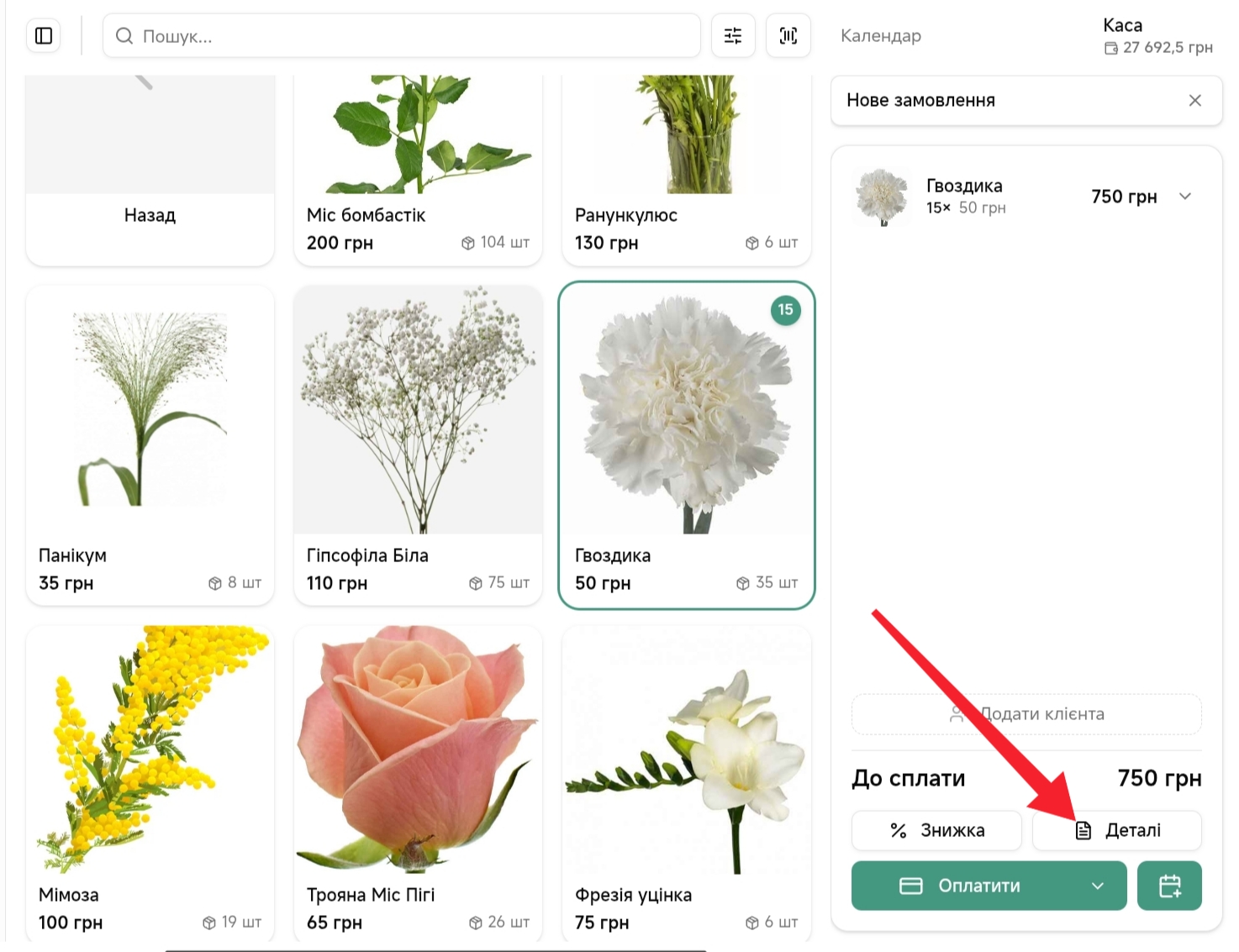 На екрані продажу при створені кожного замовлення в розділі Деталі → Виконавці потрібно додавати одного або більше працівників (у випадку якщо над одним замовленням працює декілька флористів).