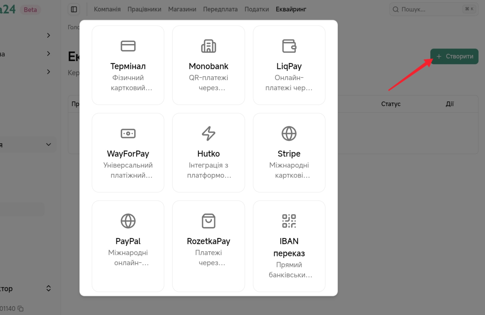Перейдіть в адмін-панель у Налаштування → Еквайринг