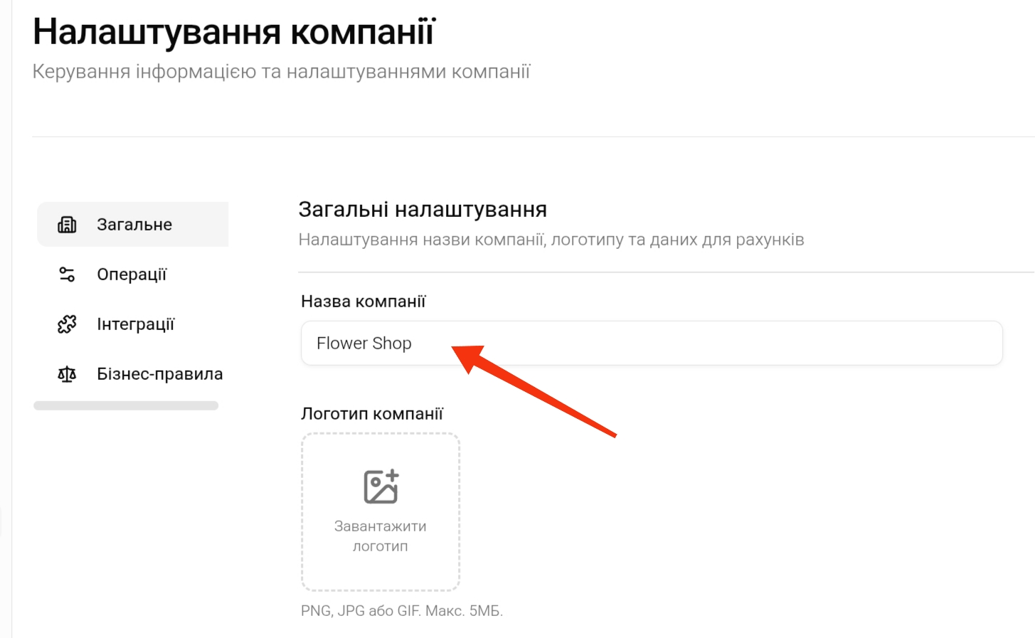 1.1 Назва компанії — вкажіть назву вашої компанії або магазину (наприклад, Flower Shop).