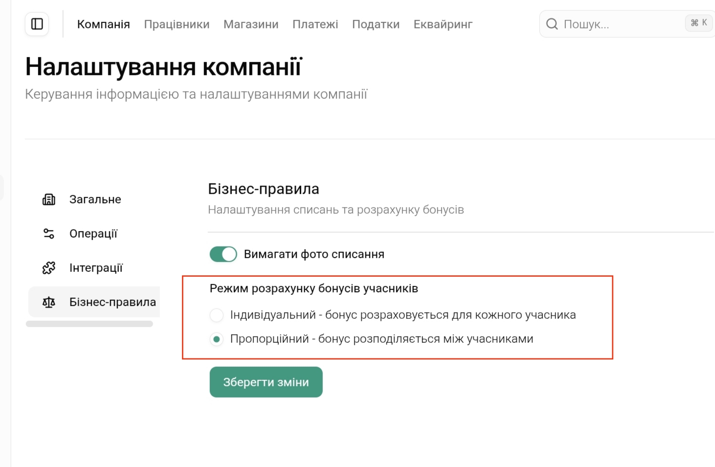 Оберіть режим, що відповідає вашим правилам нарахування бонусів.