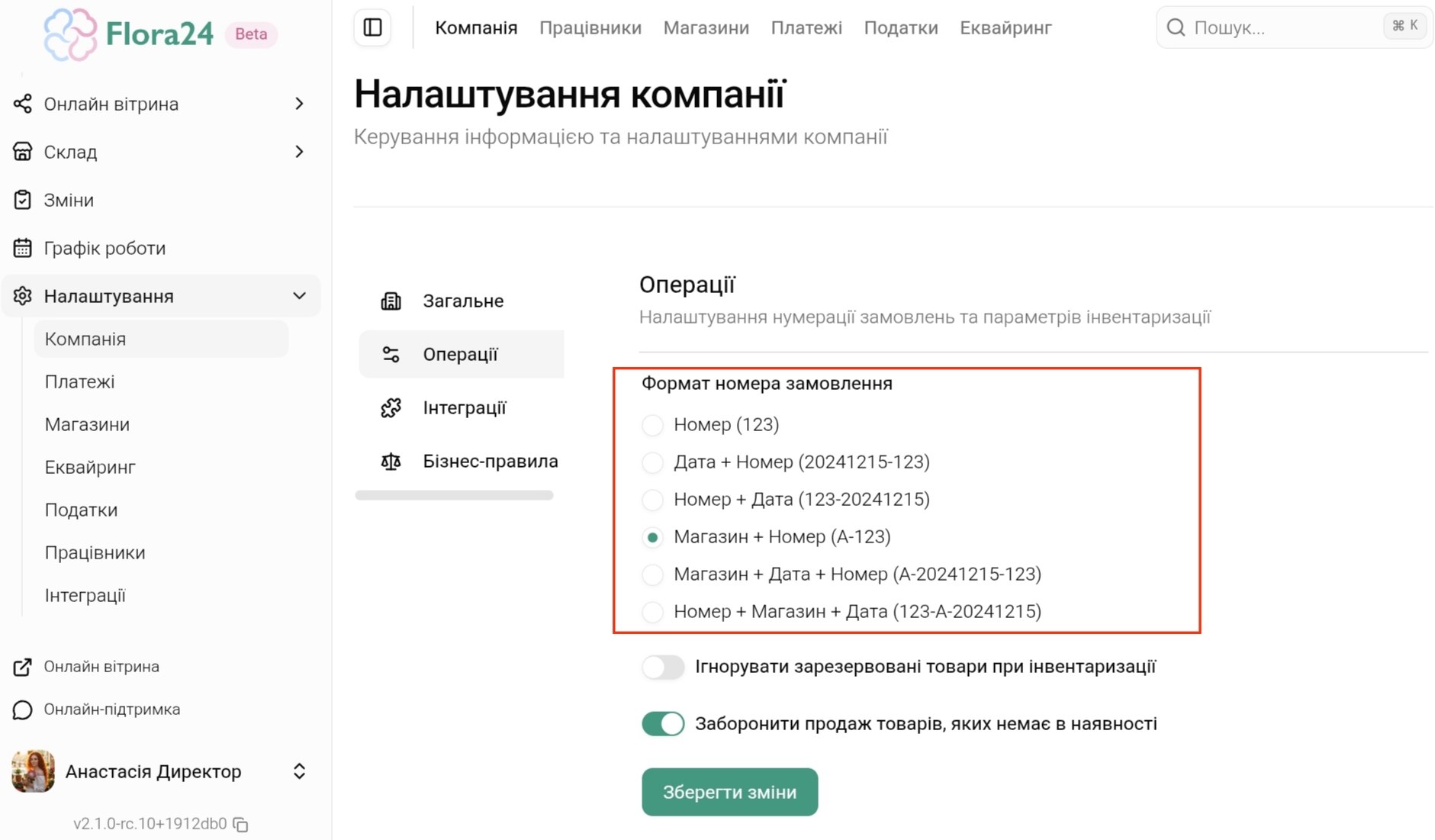 2.1 Формат номера замовлення — оберіть, як будуть нумеруватися замовлення у системі.