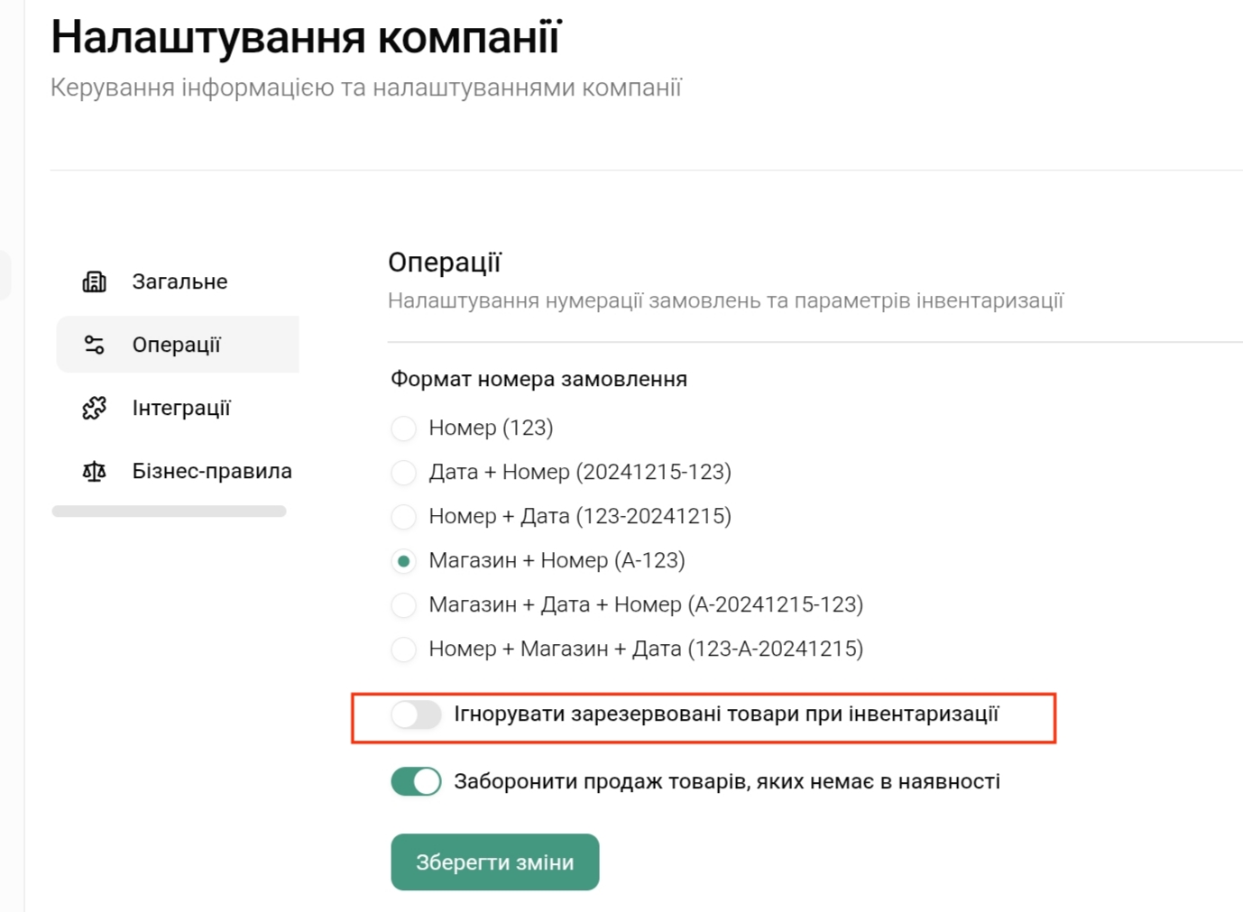 2.2 Ігнорувати зарезервовані товари під час інвентаризації — цей параметр визначає, як система рахуватиме залишки квітів під час інвентаризації.