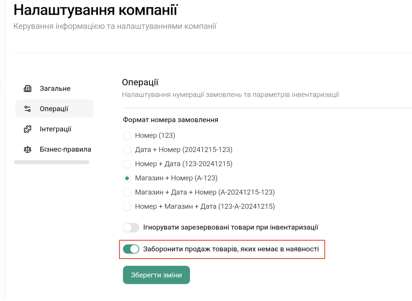 Деактивувати перемикач — система дозволить продавати товари навіть із нульовим залишком.